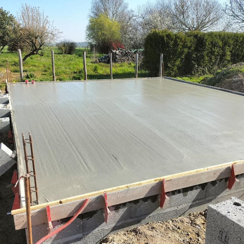 Pour les extérieurs, l’entreprise prend en charge la maçonnerie paysagère : terrasses, murets, escaliers, murs de clôture et descentes de garage. Terrassement, évacuations, dallage et finitions s’alignent avec l’usage visé. Les dalles en béton pour maison à ossature bois, notamment, sont réalisées avec précision pour une pose sereine.